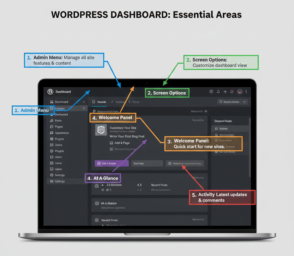 Free Resource: The official WordPress documentation on Learn WordPress offers interactive lessons that walk you through the dashboard systematically.